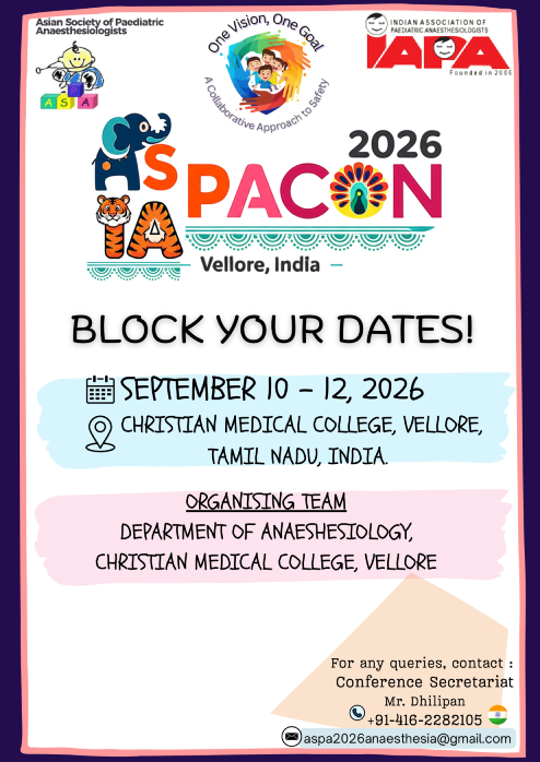 - Upcoming National Conference on Paediatric Anaesthesia IAPA-2025 @ AFMC @ Pune, Mumbai.